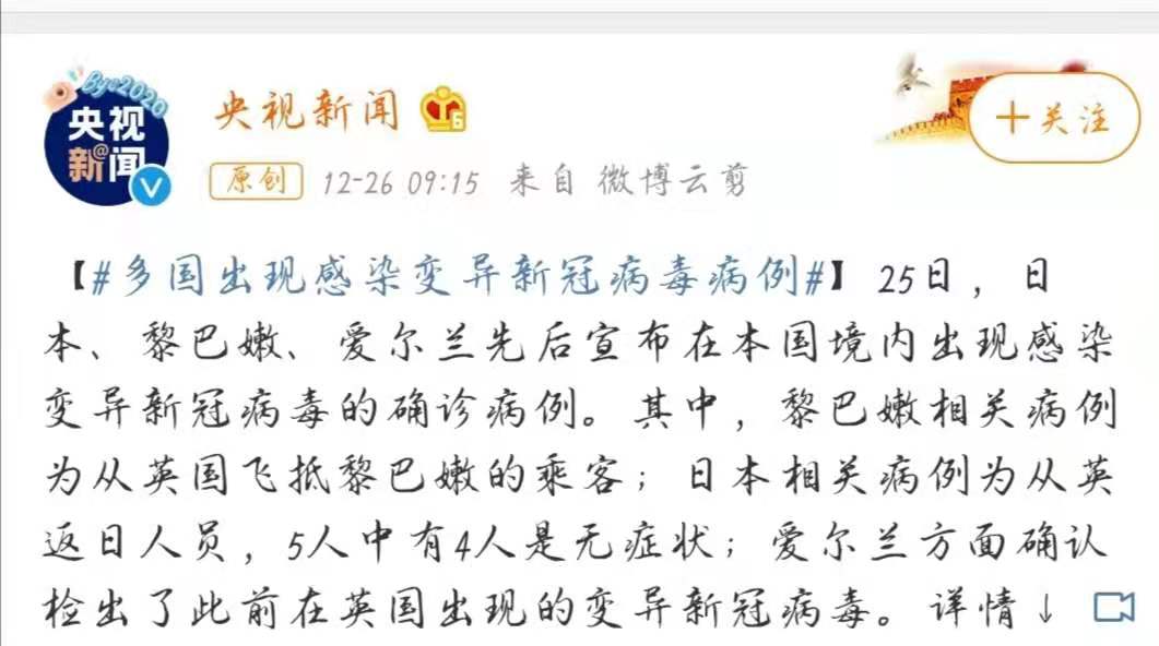 英国一条“新冠病毒已经变异,传播速度比原先要快上70%”的消息,让全球人陷入恐慌。可见境外疫情在加速蔓延,形式严峻复杂,传入我国的风险也在逐步加大。