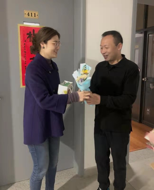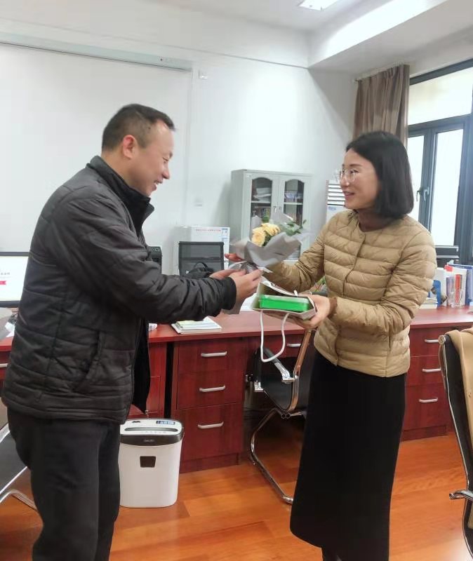 学院党总支副书记方盼、西溪学者滕小春与学院工会委员们在课堂间隙分别为在讲台上挥洒汗水和在办公室勤恳工作的女教职工们送去鲜花和礼物,并致以慰问和祝福。