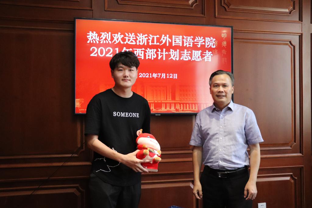 2017级朝鲜语1班陈则安等“西部计划”志愿者。校党委副书记赵文波出席并讲话,学院党总支书记夏颐和相关部门、学院负责人参加欢送会。