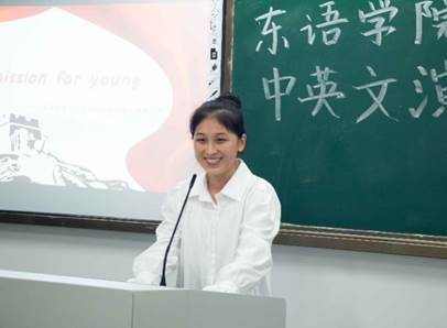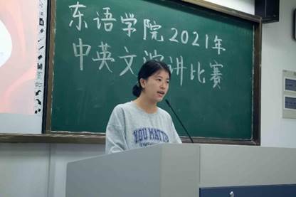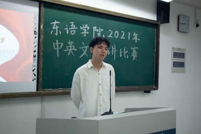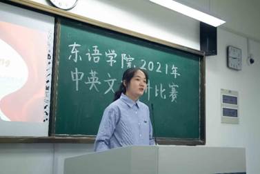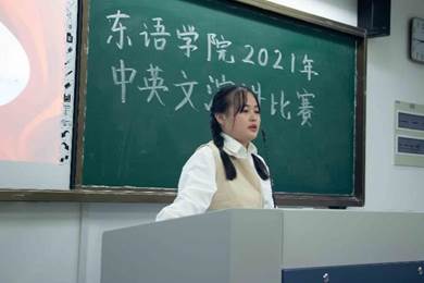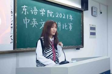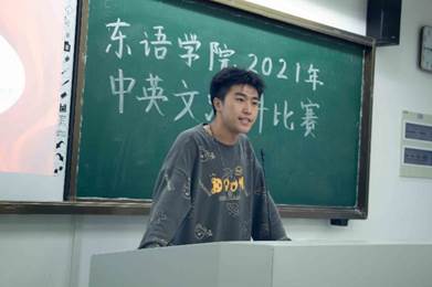 在紧接着的第二环节中,选手们随机抽选演讲主题,并在1分钟之内发表自己对于主题的见解。选手们言辞流利、妙语连珠,展现了机敏、灵活的应变能力与从容不迫的翩翩风度,为观众们呈现了一场精彩的视听盛宴的同时充分展现了新一级东语学子的青春风采。