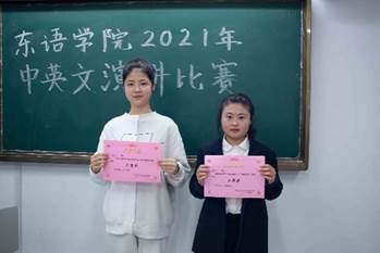 经过耐心细致的评审,最终21土语一班的张灿天、 20日语三班的李屹获得一等奖,21阿语二班的缪筱昕、21阿语一班的宋宏雨获得二等奖,21阿语二班朱合悦、21日语二班的高阳获得三等奖,21韩语一班的王菲获得优胜奖。
