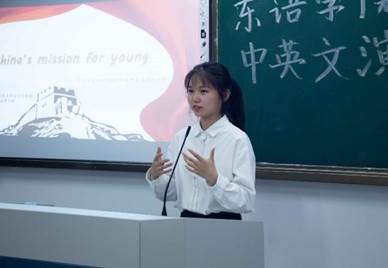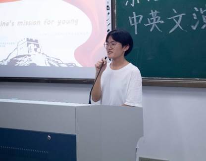 第一环节英文演讲的主题为:China's Mission for Young。选手们结合自身实际,用充满激情的语言和生动鲜活的事例,畅谈对新时代赋予新一代青年使命的看法青年兴则国家兴,青年强则国家强。新时代中国青年处在中华民族发展的最好时期,既面临着难得的建功立业的人生际遇,也面临着“天将降大任于斯人”的时代使命。选手们有的提到,“我们要志存高远、脚踏实地,不断增强做中国人的志气、骨气、底气,树立为祖国为人民永久奋斗、赤诚奉献的坚定理想”;有的提到,“要锤炼品德,自觉树立和践行社会主义核心价值观,自觉用先进文化培根铸魂、启智润心,加强道德修养,明辨是非曲直,增强自我定力,矢志追求更有高度、更有境界、更有品位的人生”;还有的提到“要勇于创新,深刻理解把握时代潮流和国家需要,敢为人先、敢于突破,以聪明才智贡献国家,以开拓进取服务社会。要实学实干,脚踏实地、埋头苦干,在攀登知识高峰中追求卓越,在肩负时代重任时行胜于言,在真刀真枪的实干中成就一番事业。”