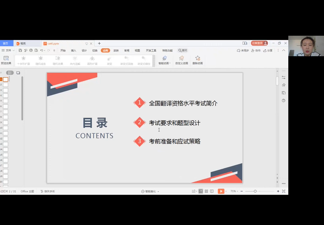 讲座中,彭老师就全国翻译资格水平考试简介、考试要求以及题型设计以及考前准备和应对策略三个部分,进行了详细讲解。