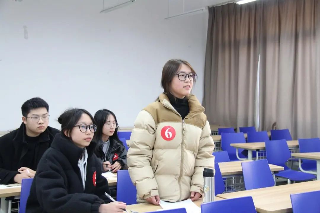 经过细致的批阅,金雯雯,张忆宁,陈莎莎,朱天义、吴碧霞,吴熙晴,刘诗睿,李芋林八位同学脱颖而出,成功晋级下一环节,并开始了热烈的讨论。