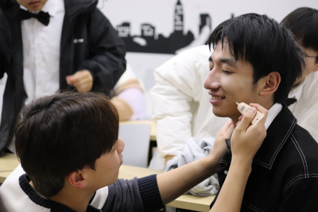合唱团精彩演出的背后是一个个日夜的努力与付出。比赛前,后勤团队为队员们精心妆扮,确保他们以最饱满的精神面貌参加比赛;每一次的彩排都努力唱出那鸿鹄之志。
