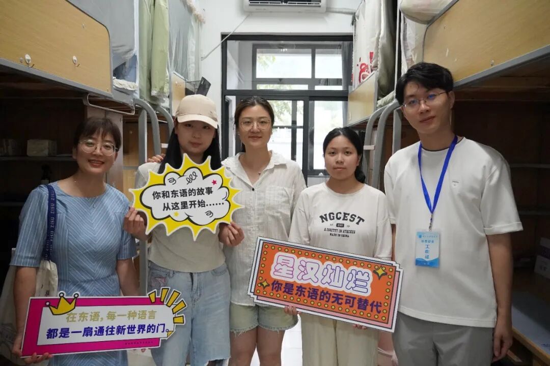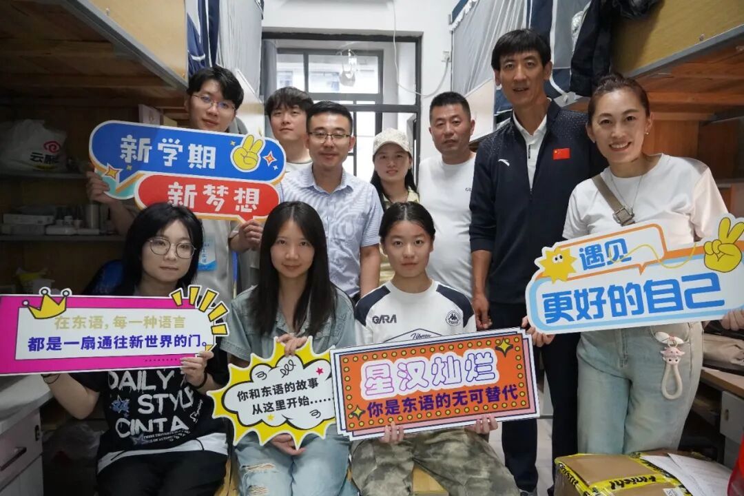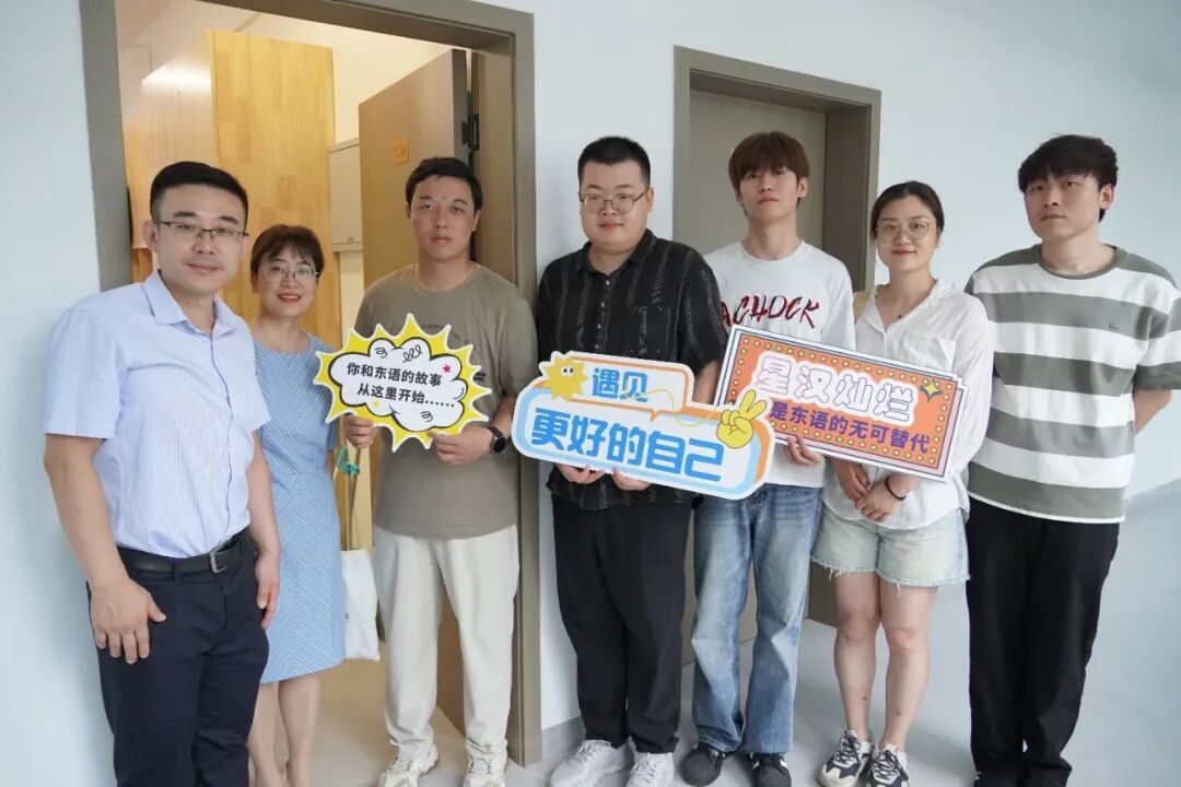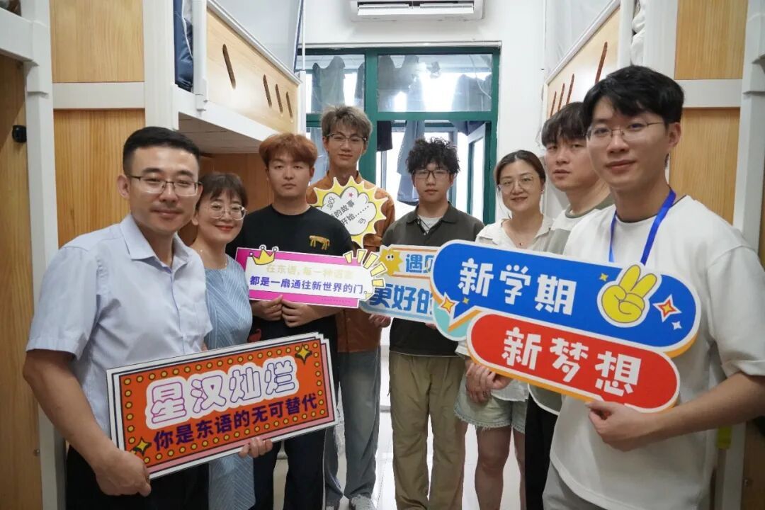 党委书记夏颐、院长曹笑笑等学院领导也来到迎新现场,一方面向忙碌在岗位上的志愿者们致以问候,细致询问服务保障情况;另一方面向新生及家长表达诚挚欢迎,叮嘱大家尽快适应校园生活。学院还为每位新生准备了精心定制的“新生大礼包”,并通过拍立得即时定格新生报到的珍贵瞬间,以贴心举动让初入校园的学子们第一时间感受到“东语大家庭”的温暖。