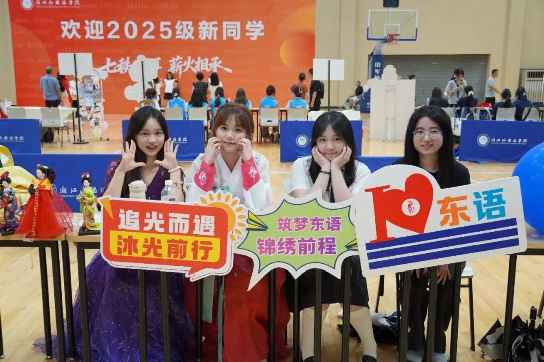 的迎新现场,处处可见“暖心风景线”。在学院专属接待点,学长学姐们身着日语、韩语等语言对象国的传统服饰,以灿烂的笑容、熟练的引导,为新生详细讲解报到流程,将专业特色与迎新服务巧妙融合。除此之外,学院迎新志愿者们还提前划分服务区域,在学校各大门入口、和香园食堂周边、雅正二三四幢公寓楼前广场等关键点位“站岗”,为携带大件行李的新生提供搬运帮助,为迷茫的家长指引路线,用奔波的身影、耐心的解答,搭建起便捷高效的“迎新服务网”,让整个报到过程秩序井然、充满温情。