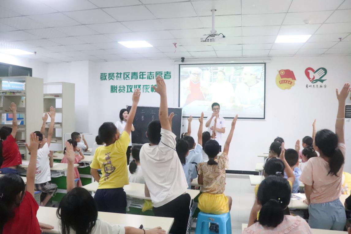 今年是中国共产党成立100周年,为了帮助这里的留守儿童学习党史、系好人生的第一粒扣子,让红色基因、革命薪火代代传承赓。队员们将唱红歌引入课堂教学,带领孩子们合唱《没有共产党就没有新中国》《红星闪闪》等红歌曲目,教导孩子们无论任何时候都要坚定不移跟着党走。“大家知不知道中国共产党是做什么的呀?”“党就是让我们过上好日子的人”,孩子们饱含对党的敬爱,用清脆的童音大声说道。课堂上,孩子们一字一句唱响“共产党辛劳为民族,共产党他一心救中国”……