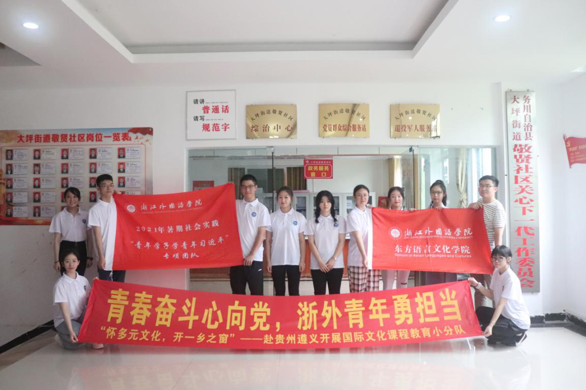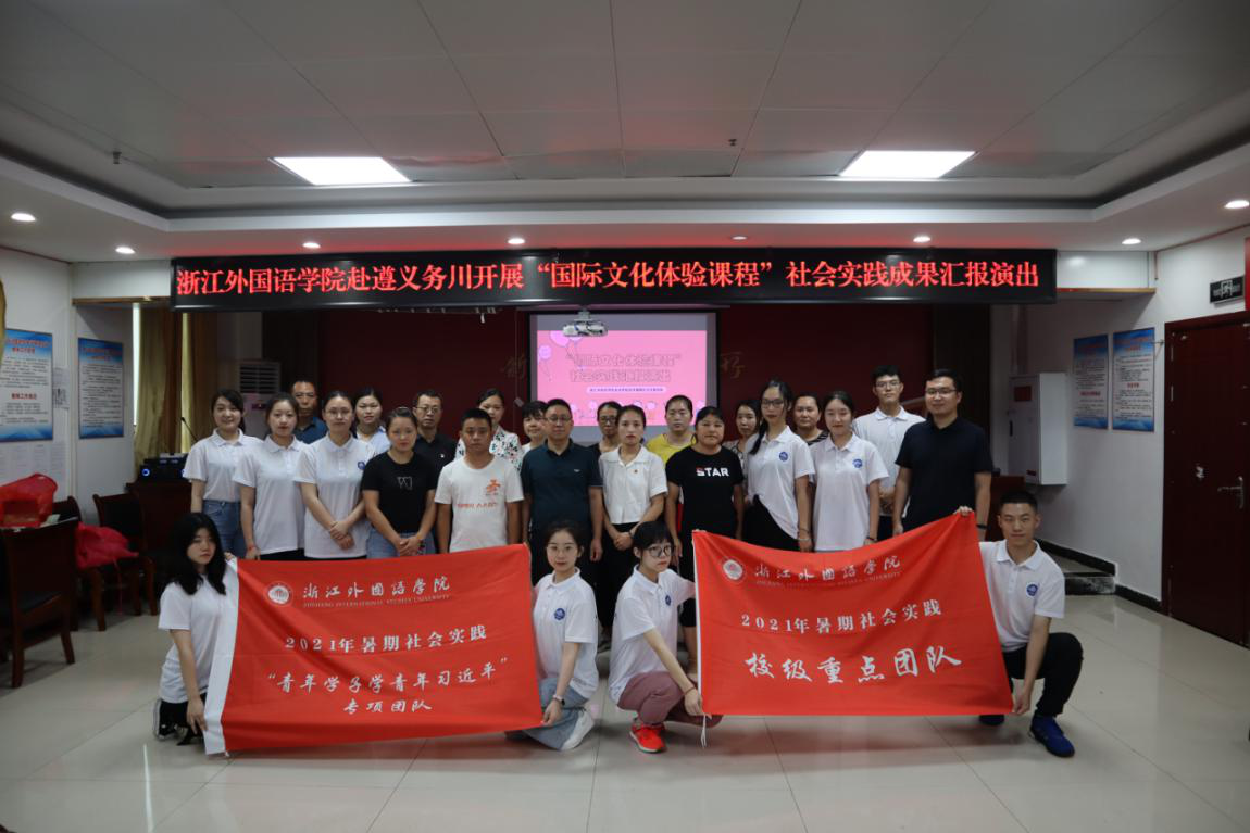 贵州是脱贫攻坚的主战场,从2018年开始,浙外青年学子从相隔千里的杭州来到遵义开展教育帮扶,传播国际文化。2019年学校同务川仡佬族苗族自治县团委合作共建了“青年学子学青年习近平”学习教育实践基地。当前,脱贫攻坚取得了全面胜利,乡村振兴的使命号角已经吹响。在务川,队员们除了给孩子们上好“国际文化体验课”,还不忘在学习和传承中体悟脱贫攻坚精神,勇担乡村振兴使命。