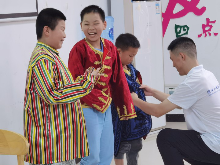 队员们还将浙外 “青年学子学青年习近平”学习教育融入课堂教学,为孩子们讲授生动活泼的少儿思政课。他们结合孩子们的的心理年龄特征,下大功夫认真备课,在具体教学环节设置上做足准备。分别以“一个大党、一条小船”和“梦想、榜样”为主题,讲述中国共产党成立和习近平七年知青岁月的故事。让孩子们学习了解中国共产党的诞生过程,学习青年习近平在梁家河当知青时的优秀精神品质。