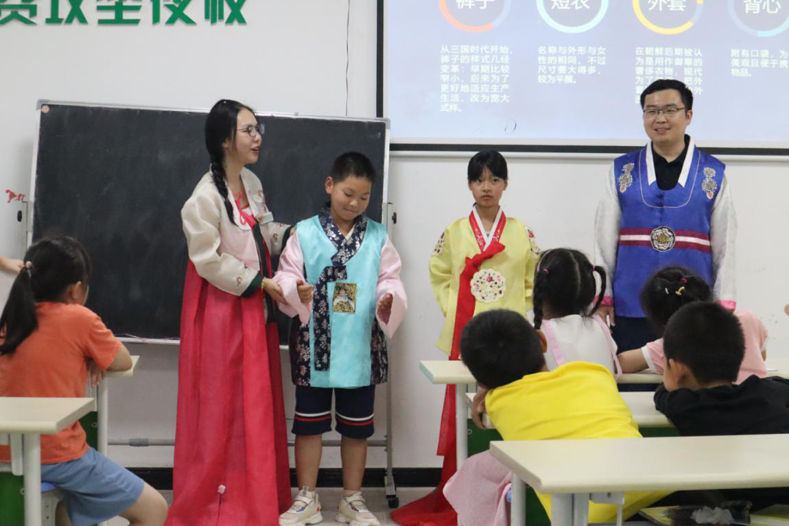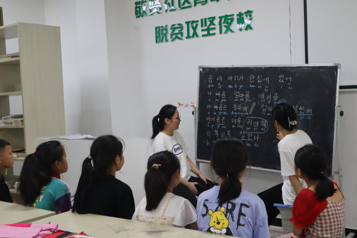 敬贤社区地处务川县大坪街道,是全县最大的一处移民安置社区。7月17—23日,实践小分队将“国际文化体验课堂”搬到这里,为三至六年级的留守儿童带去日本、阿拉伯、韩国、土耳其等不同国家的文化体验课程。在为期一周的时间里,队员们化身“小老师”,带领孩子们沉浸式体验各国的服饰、音乐、民俗、艺术、美食、游戏等文化内容,从而开阔了孩子们的视野,激发了他们对未来的憧憬。