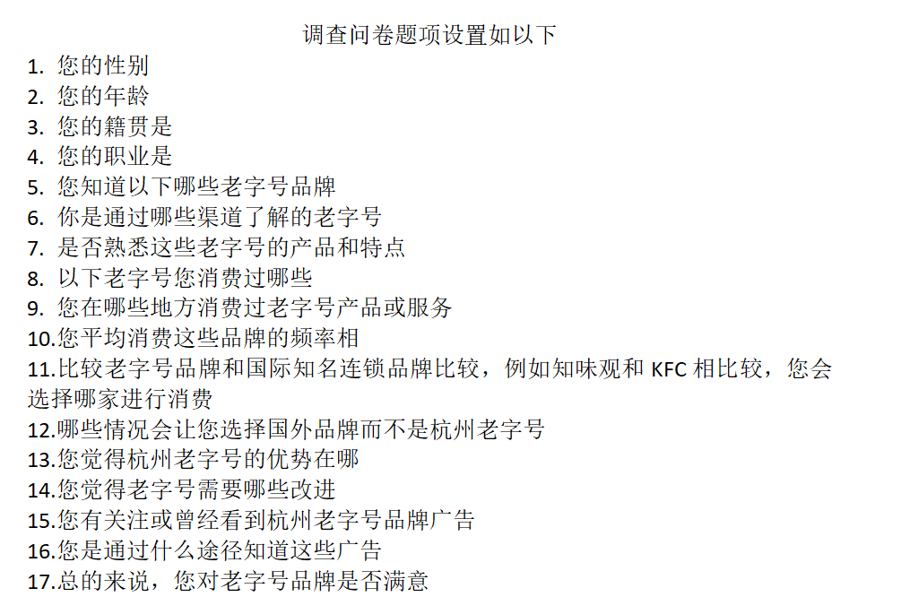 5.实践目的:了解年轻人对老字号的认知、选择,并从老字号与假冒伪劣品牌、新兴品牌、外来品牌的三对矛盾中清晰老字号在当代的定位,从而明白老字号的优势与欠缺,制定计划发挥其长处,解决老字号的多对矛盾,助其走出困境,推动老字号未来发展。