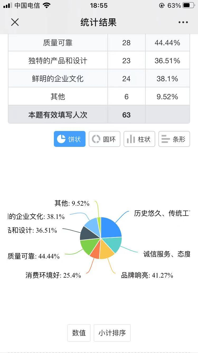 队员们还聚焦杭州老字号设计了调查问卷,在线上进行问卷调查。通过对回收的63份有效问卷进行分析,收集了年轻人群体心中的老字号形象和他们的消费意愿及意见。