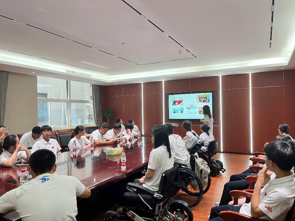 多语种文化宣讲实践团队走进浙江省残疾人体育指导中心开展暑期社会实践活动,和运动员们共话亚运、逐梦青春。