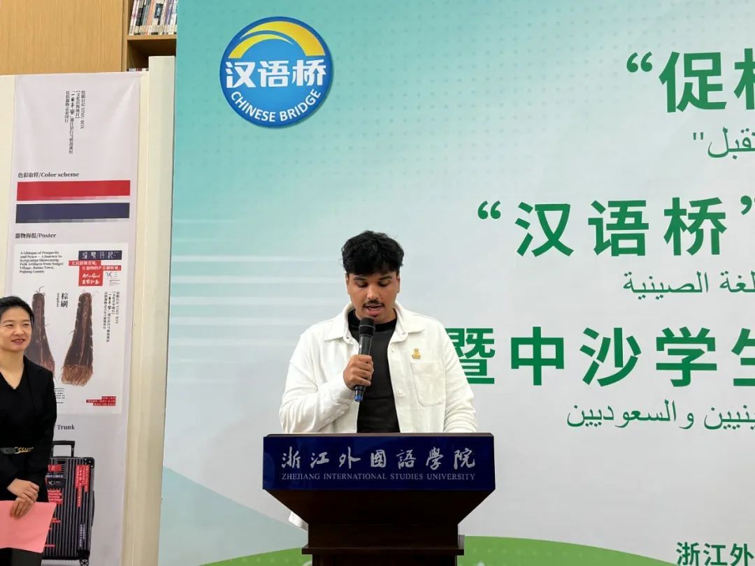 “上大学时我选择了中文专业,一开始学习汉语,我发音不准确,但我从未选择放弃,我坚信只要心中有爱一定能学好汉语。”阿卜杜勒阿齐兹国王大学中文专业四年级学生纳瓦夫代表全体营员用中文发言。浙外阿语专业四年级学生杜欣远代表浙外学生用阿拉伯语发言,他说:“在杭州亚运会期间,我成为了一名阿拉伯国家代表团的随团助理,我还有在阿拉伯国家一年的留学经历,这让我与来自阿拉伯国家的青年们结下了深厚的友谊。”