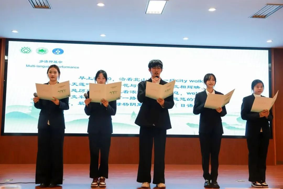 学生作为“西湖听雨”外语志愿团队的成员在外语读书会活动中带来了“行在西湖山水间”的多语种展示节目,展现了555电影
