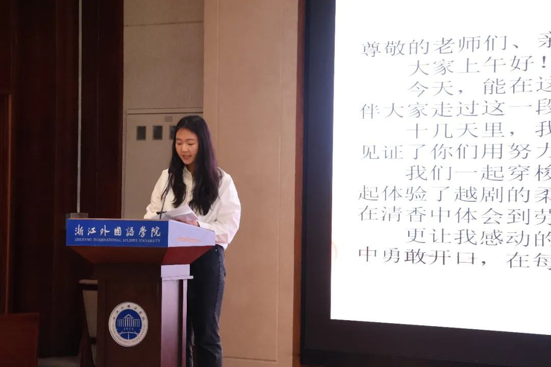学生代表发言中,来自中文专业一年级的沙特学生晴天作为代表登台,她动情地说道:“我们特别感谢亲爱的组织者、老师和志愿者,你们的热情、细心、耐心我们将永远铭记。”她分享了同伴们的心声:“我们在真实语境中练习中文,了解中国软件、饮食文化和日常生活,交到了中国朋友,也更理解彼此的文化和价值。”“愿我们都带着这份收获与感动,继续在更广阔的世界里前行;愿中沙两国的友谊,像春天的花一样,在心中永远盛开。”随团助理、2022级阿语专业学生郭文基在发言中分享了与沙特学生相识相知的十几天里一起交流的感受与体会。她表示,虽然中沙同学来自不同的国度,说着不同的语言,但正因为这份不同,大家彼此好奇、欣赏、学习,心与心之间的距离反而变得更近。