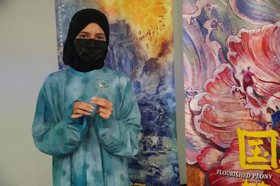在体验环节,华策集团以《国色芳华》中的中国传统文化元素为基础,设计了古韵发簪制作,并为营员们带来《国色芳华》剧中演员的真实戏服,让营员们全方位体验中国传统服饰。每位营员都沉浸在手工制作和“拍照打卡”的氛围里,“我可以在这里做一个自己喜欢的饰品,也能自己随意发挥,我真的太爱这天了。”小希开心的对我们说。“中国影视既传承历史,又充满科技魅力。”随行的沙方中文专业梁老师评价到:“学生们的进步令人惊喜,语言是文化互鉴的最佳纽带。”