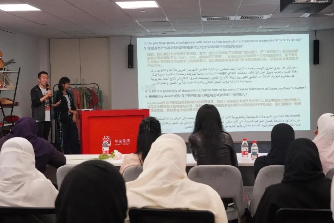 4月22日,沙特学员们参访了浙江华策影视股份有限公司。作为中国影视行业最早布局出海的公司之一,华策打造了覆盖15个语种的“华剧场”新媒体矩阵,推动中国影视从区域传播向全球生态升级,其中,华策YouTube阿语频道是重要的新媒体矩阵组成。