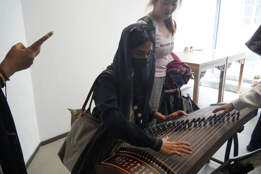 4月23日,吹着莹莹春风,沙特学子走进杭州的百姓戏园,在专业老师的指导下,在古香古色的戏台上,真实体验了传统戏剧越剧的魅力。活动伊始,百姓戏园的老师带领营员们了解、认识了中国传统乐器。在展厅里,学员们驻足古琴展区,在老师的讲解和指导下,多名学员尝试指尖漫拍,千年琴音令人凝神静思。学员温容若(RUWAYNA KHALAF)感慨到:“古琴的声音很漂亮,即使语言不通,也能感受到其中的妙处。”