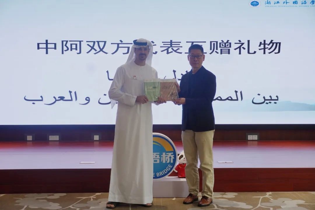 仪式最后,姚旻与马蒂亚斯·勒特梅代表双方互赠礼物。学校阿拉伯研究中心相关负责人还通过团组向迪拜大学赠送研究中心参与浙江省学术精品外译项目所编纂的阿语版图书《图说浙江茶文化》《浙江博物馆藏一万年》。至此,为期近两周的阿联酋学生“汉语桥”春令营顺利结营。