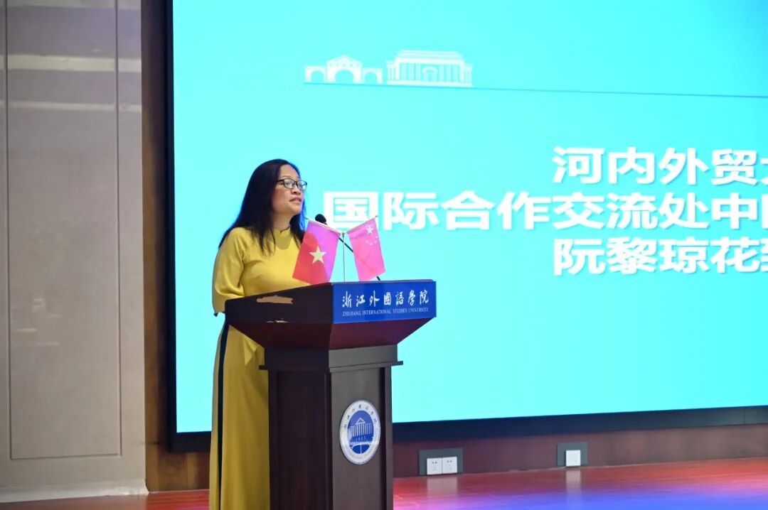 向远道而来的越南师生致以最诚挚的问候,并表示中越两国山水相连、血脉相亲,两国高校始终是中越合作的先锋力量。越南外贸大学作为越南培养国际经贸人才的重镇,与我校在语言教育、区域国别研究等领域有着天然的合作契合点。此次“汉语桥”夏令营项目是两校深化交流、增进友谊的重要契机。她寄语道:“越南同学们,你们是中越关系的未来使者,希望你们在这段旅程中不仅学好汉语,更能读懂中国的发展故事,将所见所闻带回越南,成为两国民心相通的‘民间外交官’。”
