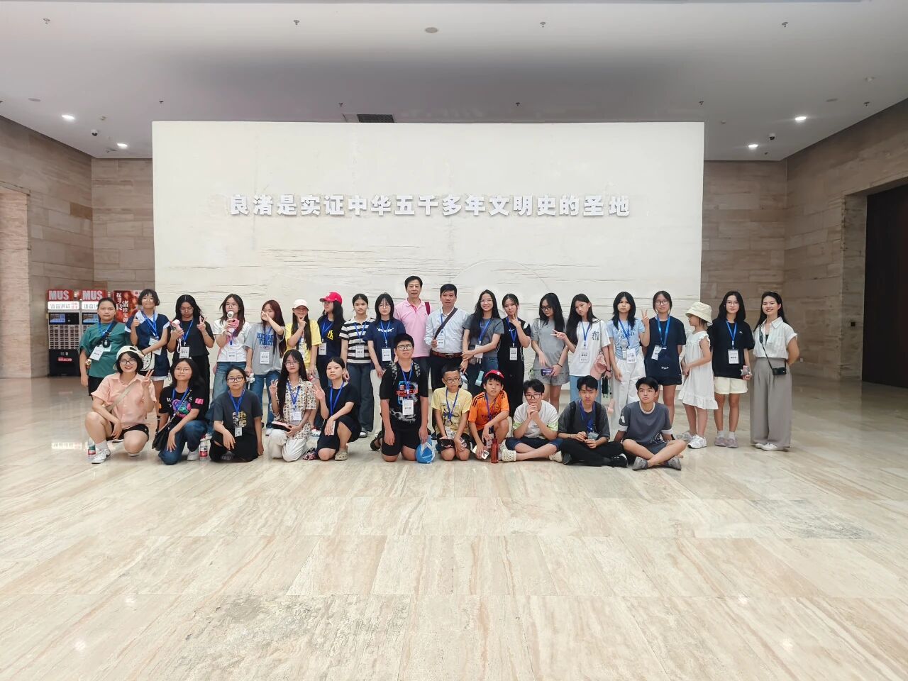 7月16日,营员们走进良渚博物院。玻璃后的器物沉默陈列,讲解员的声音带着历史温度,缓缓铺展遥远文明故事。孩子们俯身细看纹饰拓片,指尖在空气中模仿古老刻痕;互动屏幕前,有人轻触按键,看先民生活场景在光影中流转。展厅里脚步轻缓,目光却满是探寻,仿佛在与五千年时光对话。越南学生Thái Bảo Hán(泰宝汉)说:“看到这些文物,我都能想象出他们古时候的样子!”