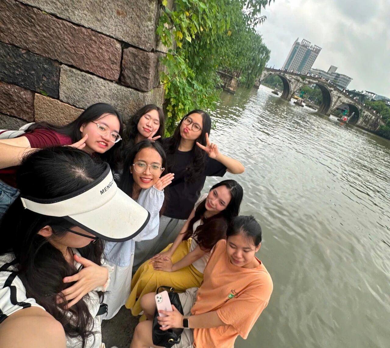 7月26日,京杭大运河畔,Nguyen Huyen Trang(阮玄庄)指着河面货船惊呼:“和湄公河上的船完全不一样!”在桥西历史街区,Nguyen Thi Phuong Thanh(阮氏芳清)对着清代粮仓的木质滑槽笑称:“古人竟是用‘溜滑梯’运粮食!”中国伞博物馆里,Nguyen Thuy Tien(阮水仙)在虚拟伞面上画下越南国花莲花,中国学生王文婧添上墨竹,跨国合绘的伞面绽放出友谊之花。