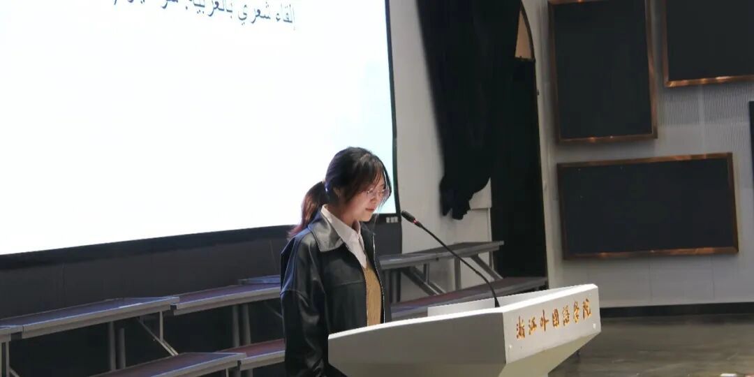 交流展示环节精彩纷呈。浙外阿语专业学生徐苗带来阿拉伯语诗朗诵《迎宾赋》,悠长的吟诵与典雅的韵律相得益彰,生动展现了中文古典文学与阿拉伯语言的跨文化融合之美,赢得了在场嘉宾与师生的一致赞誉。沙特同学们则献上了极具民族特色的传统舞蹈表演,随着节奏鲜明的音乐响起,同学们精神抖擞、动作整齐划一,充分展现了沙特传统文化的热烈氛围与独特活力。舞蹈特有的节奏感与欢庆气息,为现场增添了浓厚的异域风情,引发阵阵掌声。两场精彩表演不仅展现了中沙学子的艺术才华,更搭建起一座以艺术为纽带、以文化互鉴为核心的交流桥梁。