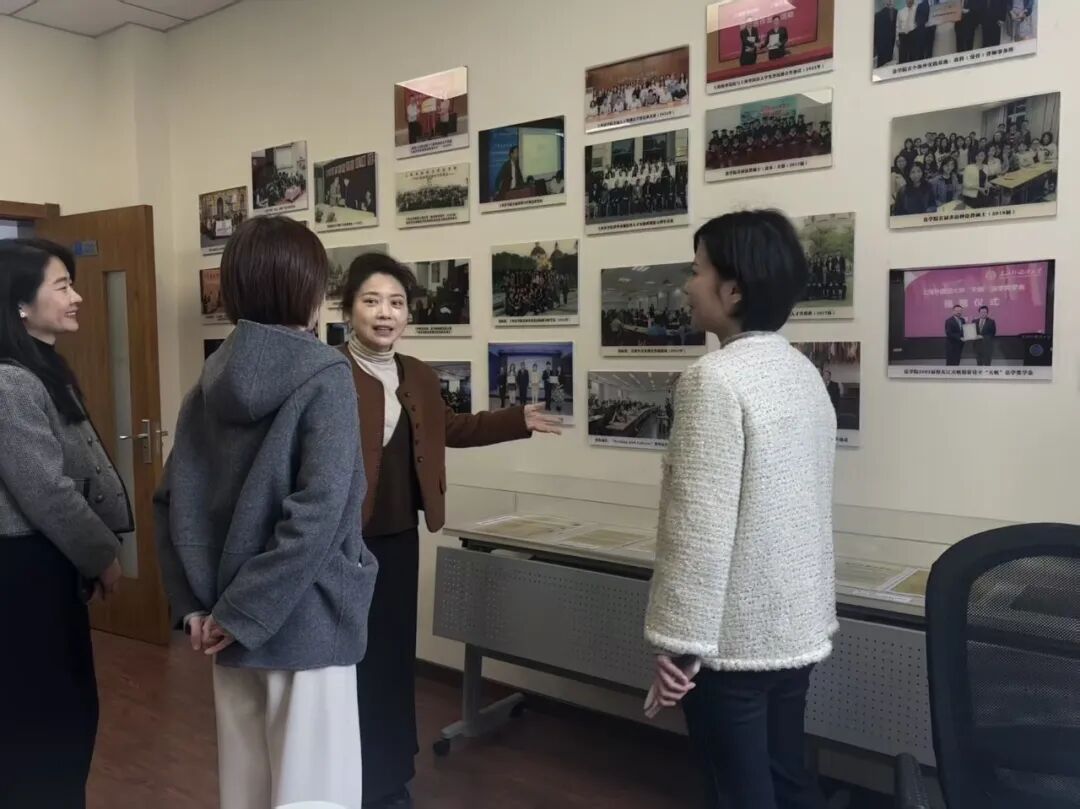 一行在李亚萍的带领下参观了法学院的公共文化空间、学院图书馆、校友之家工作室等。