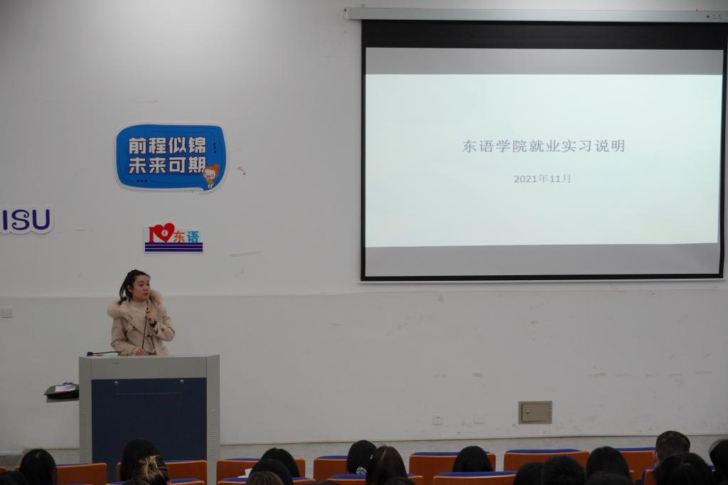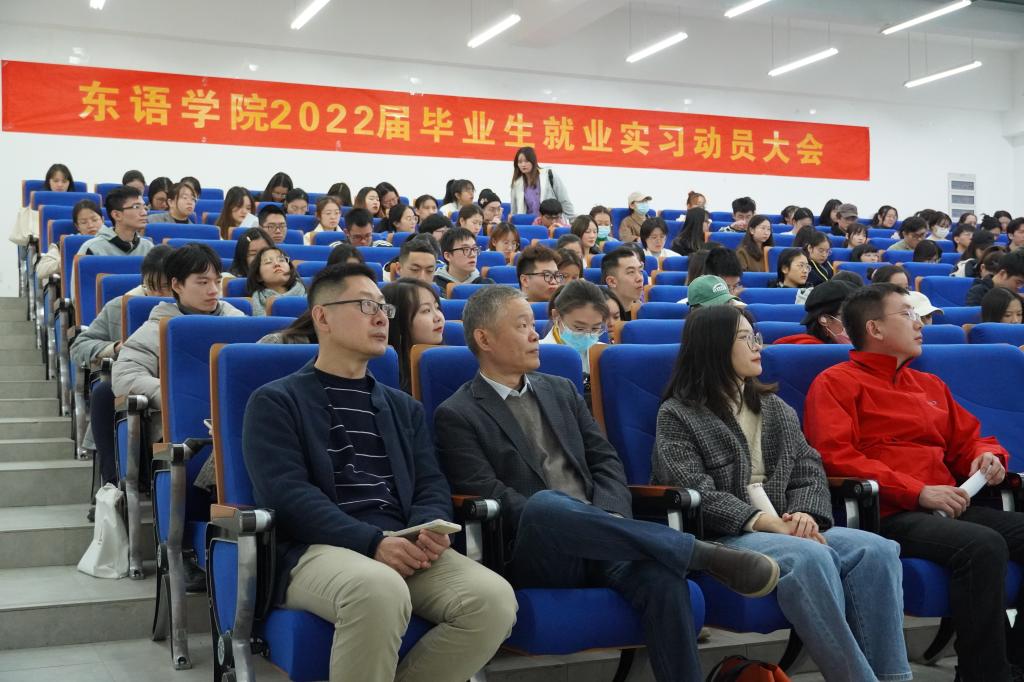 在融D108召开2022届毕业生就业实习动员会。学院副院长曹笑笑、党总支副书记宋洋、阿拉伯语系主任刘彬、土耳其语系主任沈志兴、朝鲜语系金海救、土耳其语系张荻、学工办辅导员郑周璇老师等老师出席本次大会。