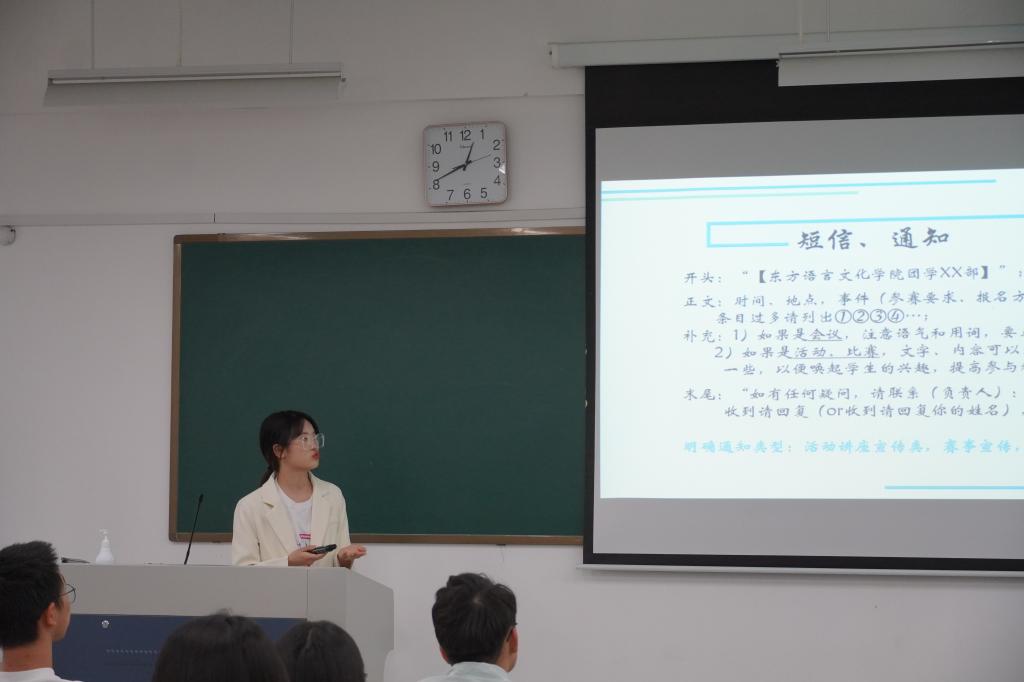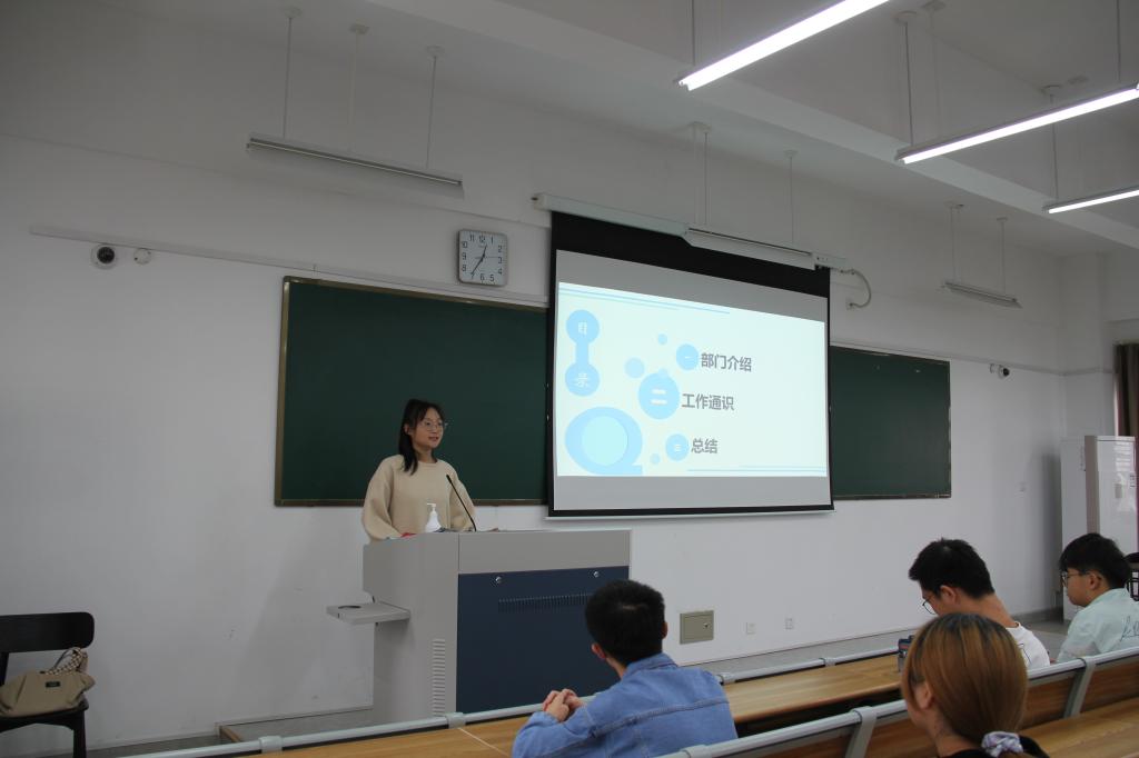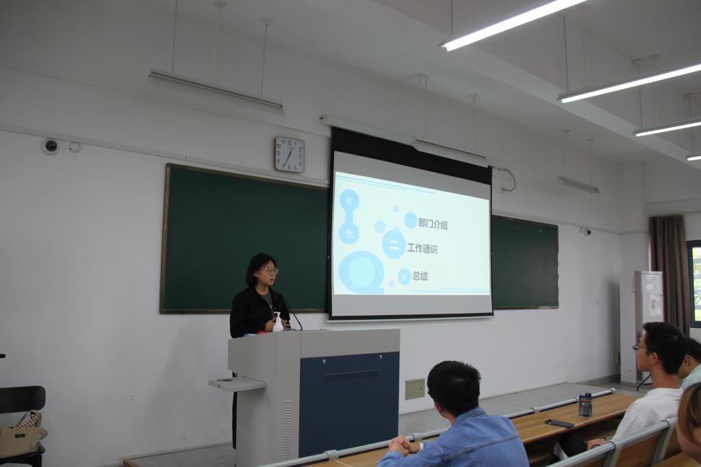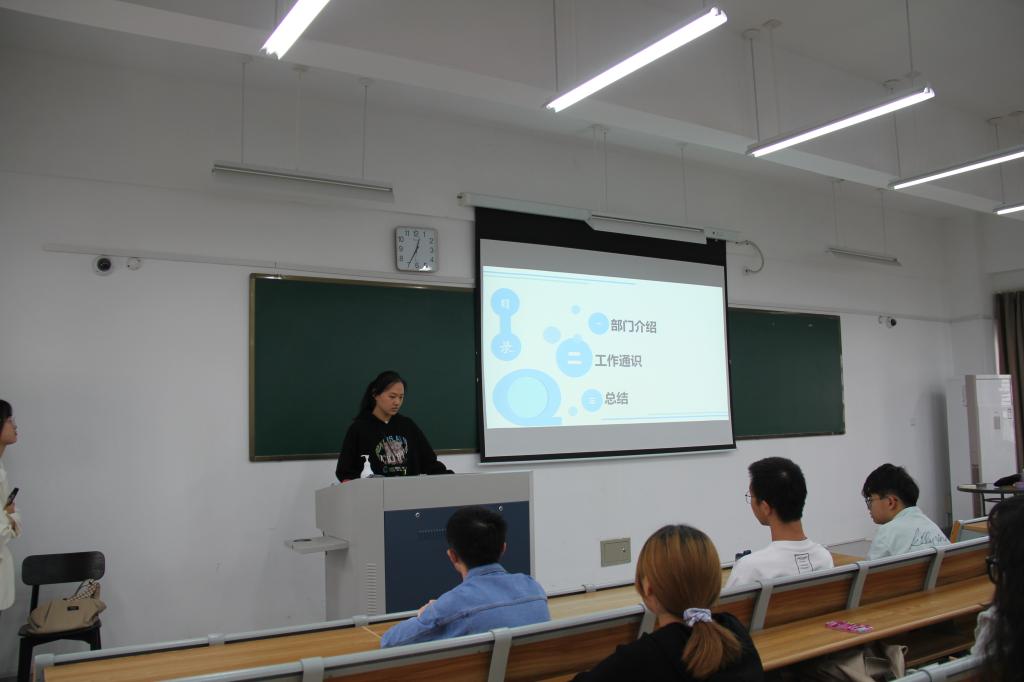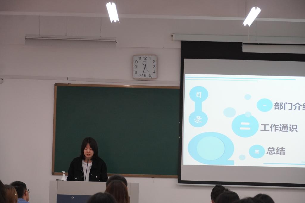 夏雪莉和李科毅分别介绍了团委与学生会的基本职能。随后,团委志工部、就创部、心服部、素拓部、组织部、办公室及学生会权益部、学习部、文体部、秘书处等各部门负责人先后上台发言,向新成员们介绍各部门的具体工作内容,激发了学生们的热情和信心。