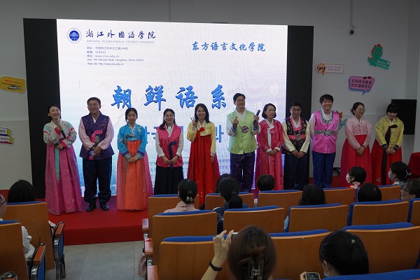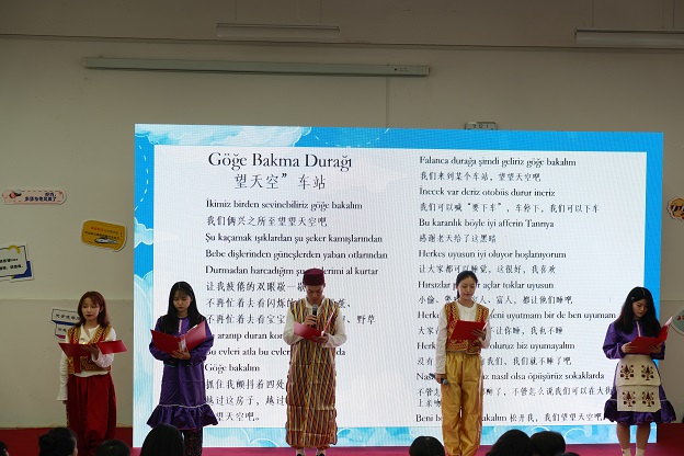 学院四个语系的老生进行了多语种文化展示。韩语系为大家带来了题为《坚持推动构建人类命运共同体》的韩语诗朗诵,阿语系展示了充满阿语特色的舞蹈表演《乌列奈尔》,土语系为新生们表演了土语诗朗诵《望天空》,日语系则为新生们激情演唱了经典日语歌曲《勇敢的心》。在掌声和迷人的东方艺术气息中,师生见面会正式开始。