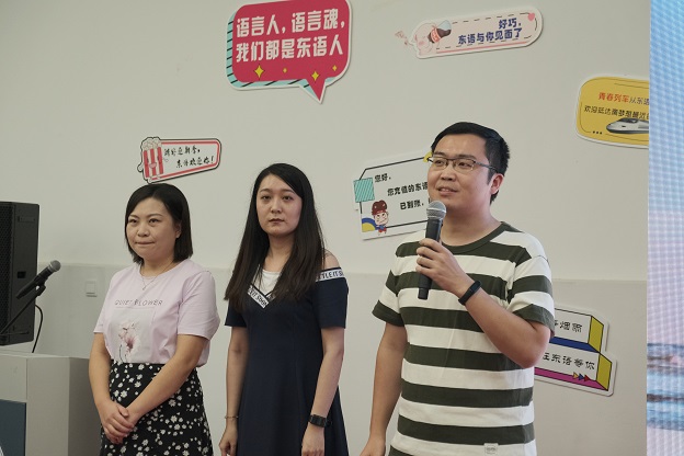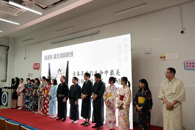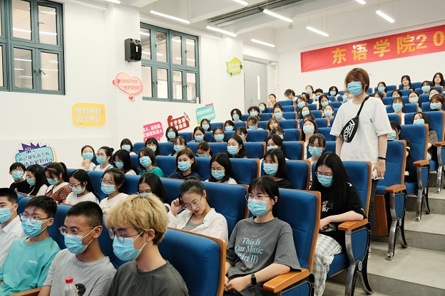接下来,各个语系的老师们身着语种国民族服饰,向全体新生作了一一介绍。在老师幽默风趣的语言中,新生们很快就对各专业的老师有了直观的初步认识和了解,拉进了师生间的距离。老师们神采飞扬、精神饱满,与新生们积极展开交流,对新生们表达了自己的欢迎与祝福。学院办公室老师和学工办的辅导员老师们也介绍了自己的团队,表达了对新生的祝愿。