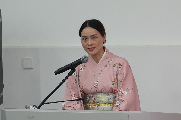 新生班主任代表日语系寿舒舒老师上台发言,她的发言中满是对新生的美好祝愿与热烈的欢迎。她通过阿拉丁神灯的故事,引出了对新生的要求与期盼。她还引用了两句句土耳其名言,“骆驼虽然走得慢,但总能走到目的地”“恒心架起通天路,勇气吹开智慧门”,以此来希望新生们脚踏实地,通过大学学习取得属于自己的成就。