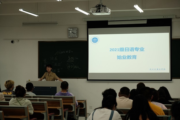 介绍了学院基本情况,并着重介绍了学院雄厚的师资力量。她祝福同学们,在浙外收获知识、收获成长、收获美好,鼓励同学们立大志、明大德、成大才、担大任,努力成为堪当民族复兴重任的时代新人。最后,她还和大家分享了三句话:善于学习,就是善于进步;勇于实践,可以突破自我;敢于追梦,方能成就梦想。希望新生能够用激情奋斗和顽强拼搏擦亮青春的底色,勇敢地成为新时代的追梦人。