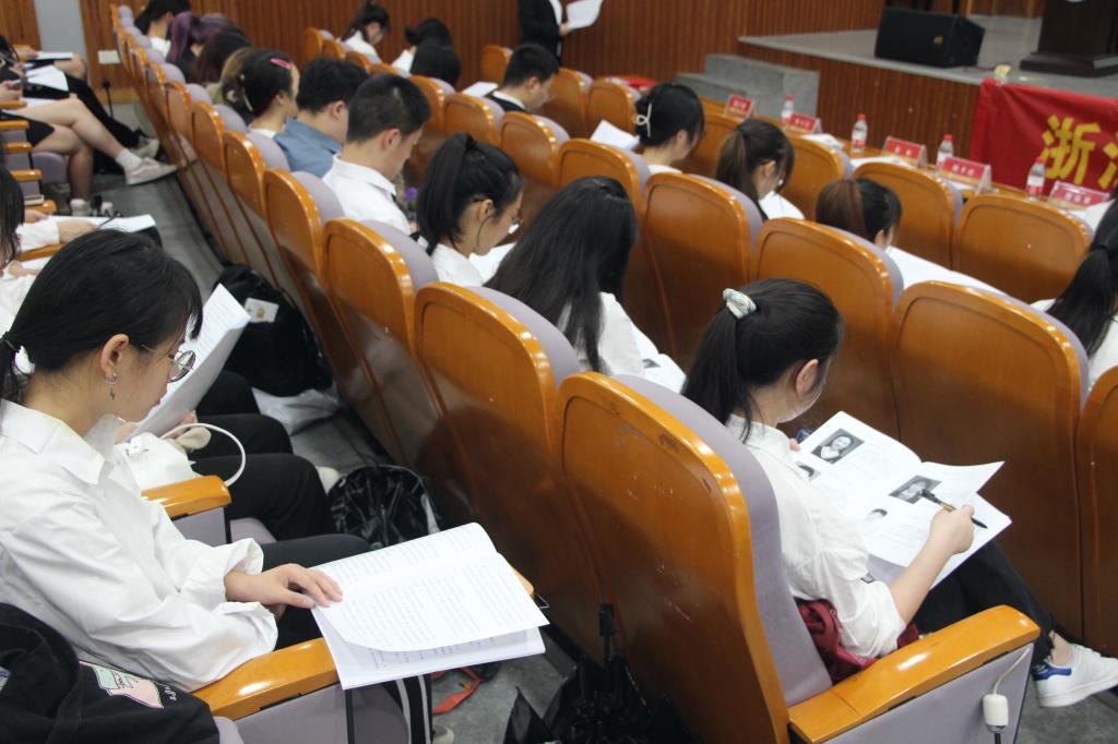 在第二次全体会议中,与会代表认真听取并审议通过了《委员选举办法(草案)》、《监票、计票人名单(草案)》。主席团候选人——19阿语1班张涵、20日语2班王祉、19阿语2班邱添宇依次发表竞选演讲,代表们依据选举办法,投出庄严而神圣的选票。