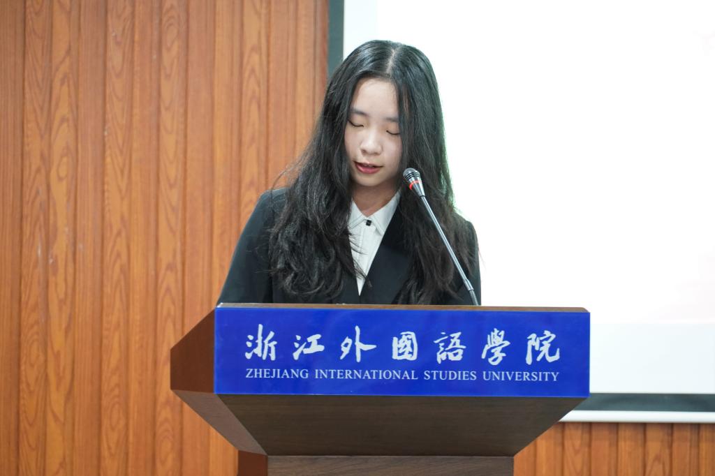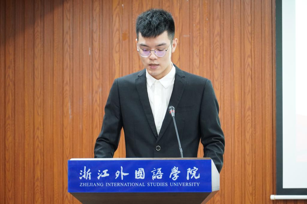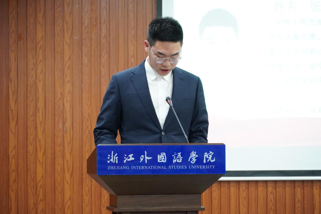 国际商学院学生会主席团成员陈怡欣作为兄弟学院团学干部代表发表致辞,她向大会的召开表示热烈的祝贺,并预祝大会圆满成功。原学生会主席团成员钱子豪代表上一届学生会主席团向大会作工作报告,认真总结了过去一年555电影