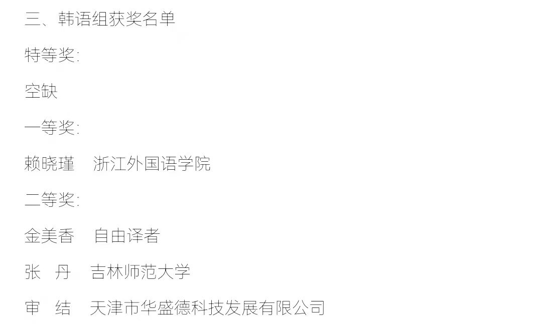 李花子老师、孙霁老师的指导下,2018级朝鲜语专业赖晓瑾同学获“第三届吉林省多语种翻译(笔译)比赛”韩语组一等奖,一同获奖的还有来自上海外国语大学、延边大学、吉林大学、吉林外国语大学等高校的大学生。
