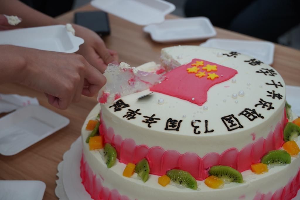 最后,同学们与老师一起切生日蛋糕,庆祝中华人民共和国成立73周年。现场氛围浓厚,师生其乐融融,共同分享美味和快乐。在欢乐的氛围中,2022年555电影
