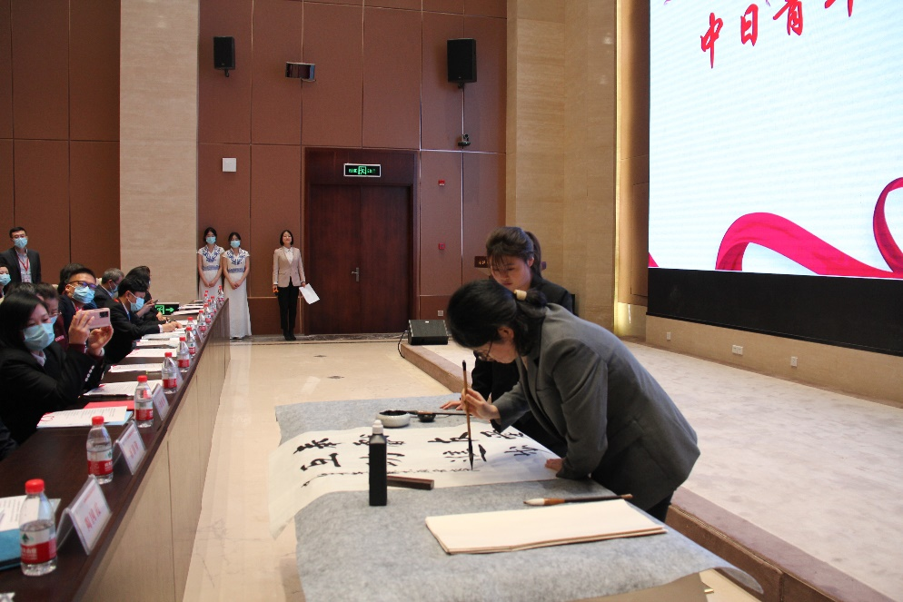 论坛上,中日青年缪筱昕和大泽珠弥子同写一幅字,内容为“奉献、友爱、互助、进步”的志愿者精神,他们为本次论坛的成功举办增色添彩。