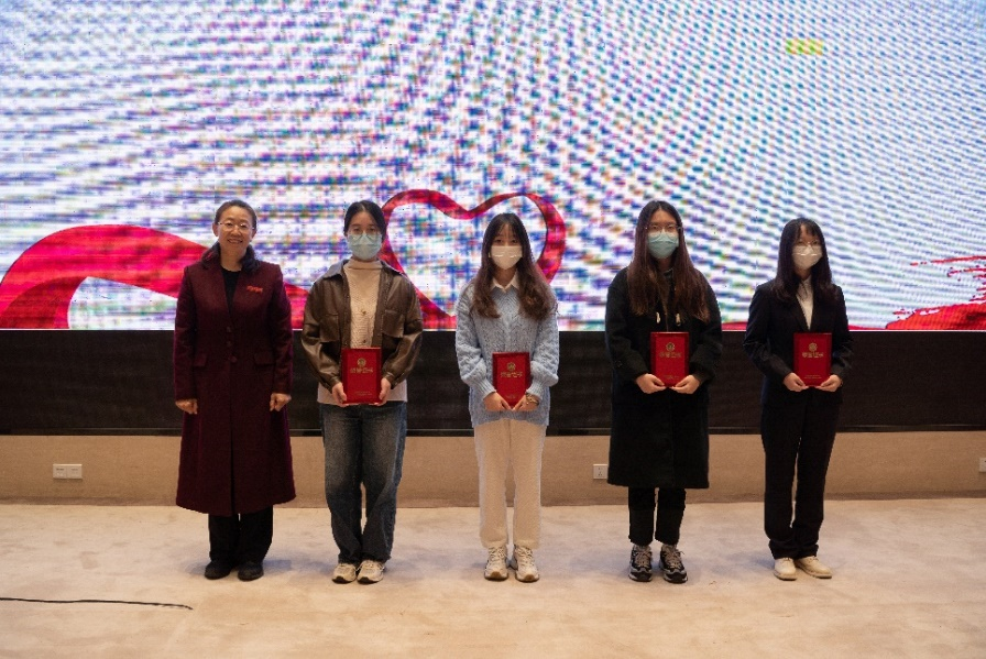 柴改英副校长为主题征文获奖者代表颁奖