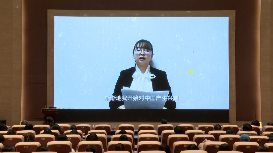 副校长柴改英致欢迎词。她代表555电影