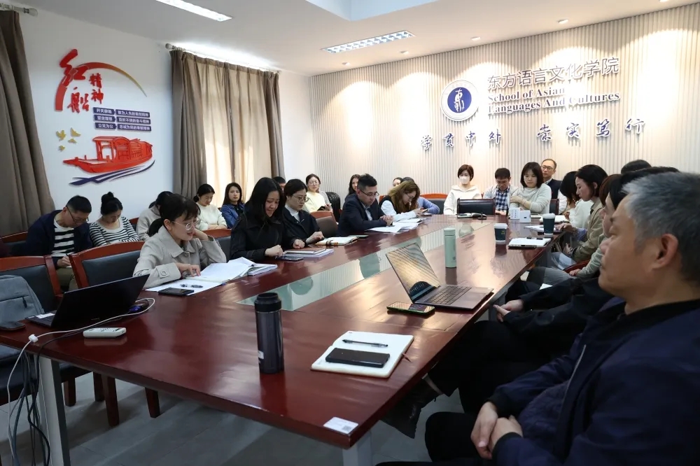 吴玲首先介绍了新入职的日语系教师,接着代表学院班子向全体教职工进行2022年度工作情况的述职。她着重指出学院过去一年在专业建设、社会服务等方面存在的不足,分析查摆原因,提出对策,并对新学期的重点工作进行了部署。