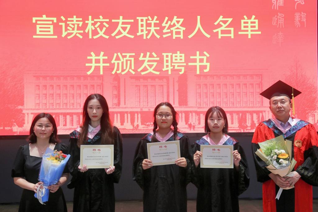 毕业班班主任为校友联络人颁发聘书。每一位校友联络人都肩负起了一份责任,成为母校与校友连接的纽带。