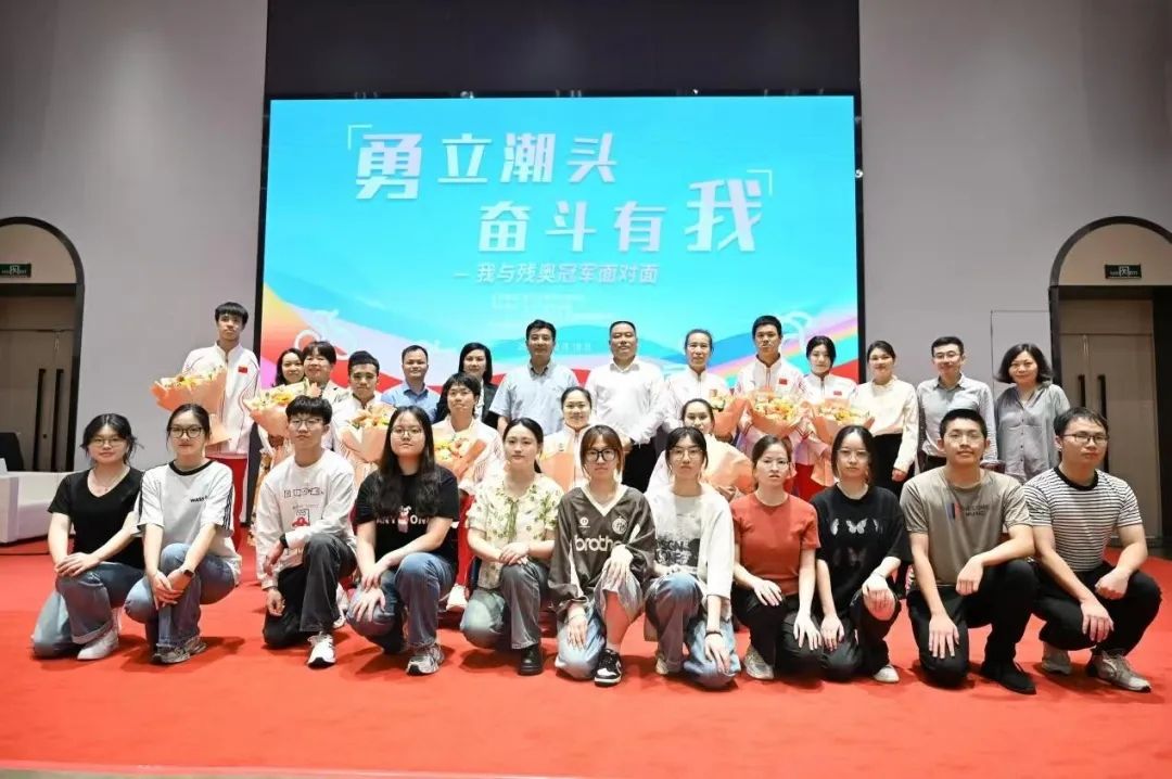 宣讲会后,同学们纷纷来到冠军们的身边分享自己的收获和体会。22日语专业的李晓彤说,这次宣讲让我有机会了解到残奥冠军背后那段不平凡的成长历程,他们的坚持与勇气令我敬佩。我也要以无畏之心直面一切挑战,保持一颗乐观向上的心,不懈奋斗。