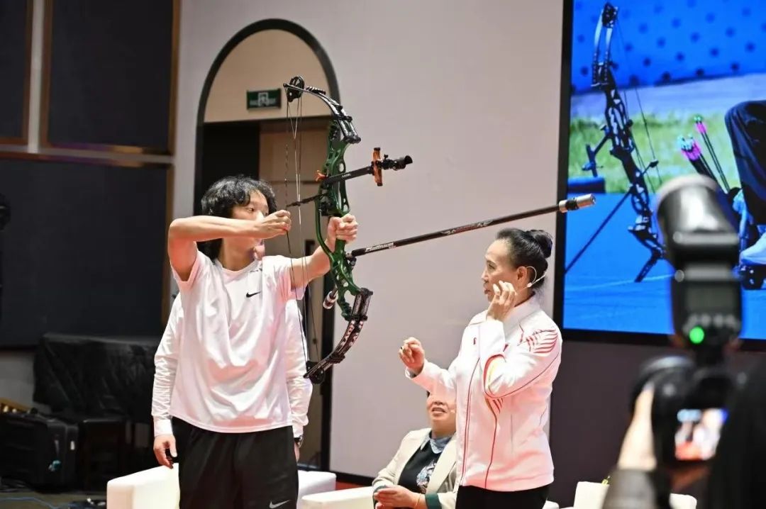 宣讲会上,获得1金1铜的射箭运动员张天鑫、混合泳接力赛金牌的运动员姚攒,以及国家游泳队副领队、浙江省残联宣文部部长陈志彪,连夺7枚金牌的游泳运动员蒋裕燕的妈妈王志芳,教练员邵淑芬、冯洁等通过访谈的形式,讲述了冠军夺冠背后的感人故事。王志芳眼中闪着泪花地说:“蒋裕燕说,鱼有一条尾巴,而我有一条腿,是游泳给我了自信、给了我勇气、给了我人生的动力。”“面对近50磅的弓,拉弓、瞄准、放下……这样的动作,每天要反复做上百次,晚上经常因手臂酸痛睡不着觉。”回顾张天鑫一路走来的不易,他的教练邵淑芬一度哽咽。现场,在邵教练的指导下,同学们纷纷上台体验拉弓,十余位体验者中,最终只有2名同学成功将近50磅的弓拉开。残奥冠军们不屈、拼搏的精神和为国争光的信念,感染了现场的每一位师生。