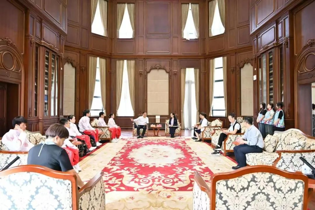 宣讲会前,校长、党委副书记张环宙会见了巴黎残奥会冠军一行。张环宙向为祖国争光、为家乡添彩的运动员以及他们的教练员和家属表示热烈祝贺。她谈到,大家顽强拼搏、奋勇争先的精神和为国争光的信念,为学校思想政治教育提供了丰富素材,希望大家发挥协同育人的作用,激励浙外学子踔厉奋发,做新时代有为青年。