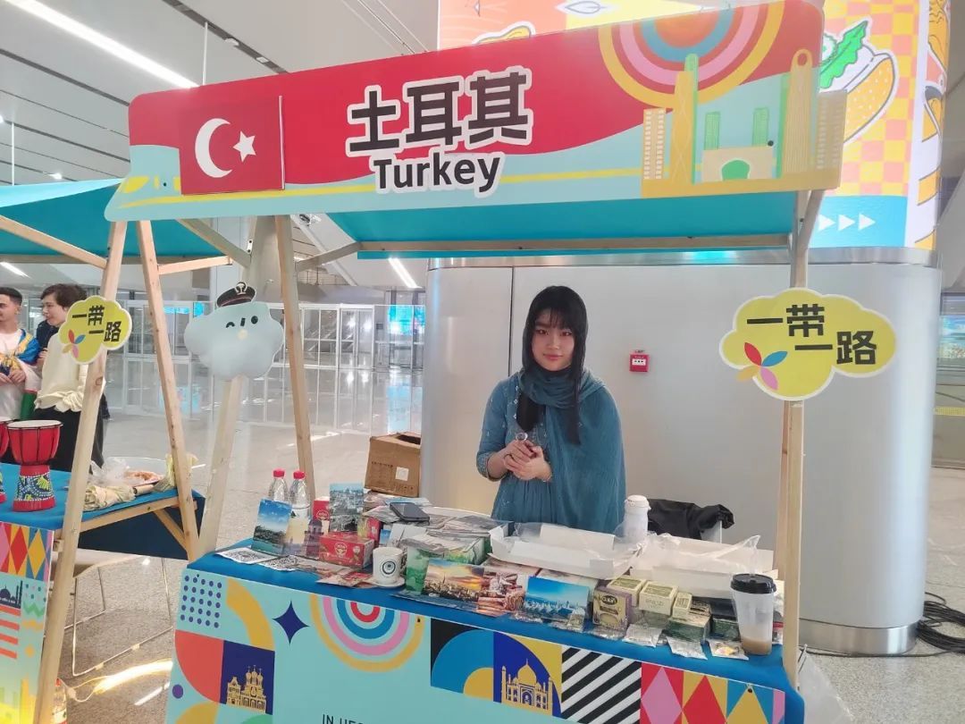 来自日语、阿拉伯语、朝鲜语、土耳其语四个专业的同学作为志愿者参与本次活动。他们布置了文化展示摊位,从传统服饰、首饰到精美的各类手工艺品,从独具特色的艺术作品、文创用品到充满人间烟火气的当地美食,学生们热情洋溢地为前来参加活动的各国留学生、旅客和市民展示多样性的文化魅力,共同搭建国际交流的舞台。