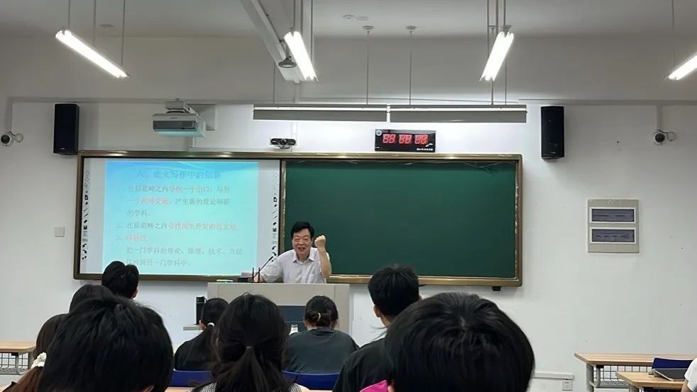 在阐述毕业论文的标准结构框架时,周烈教授从引言(包含研究背景、意义及问题提出)、文献综述、理论框架、主体分析论证到结论(涵盖研究发现、启示及展望),逐一讲解了各部分的功能、写作要点及内在逻辑关联,为学生构建了清晰的写作路径。为增强讲解的直观性与生动性,他选取以往的优秀论文及部分典型错误案例进行现场剖析,通过对比,具体示范了如何将前述的选题策略、写作方法与结构设计落到实处,指导学生有效规避常见误区,使学生们对高质量论文的标准有了更明确的认知。